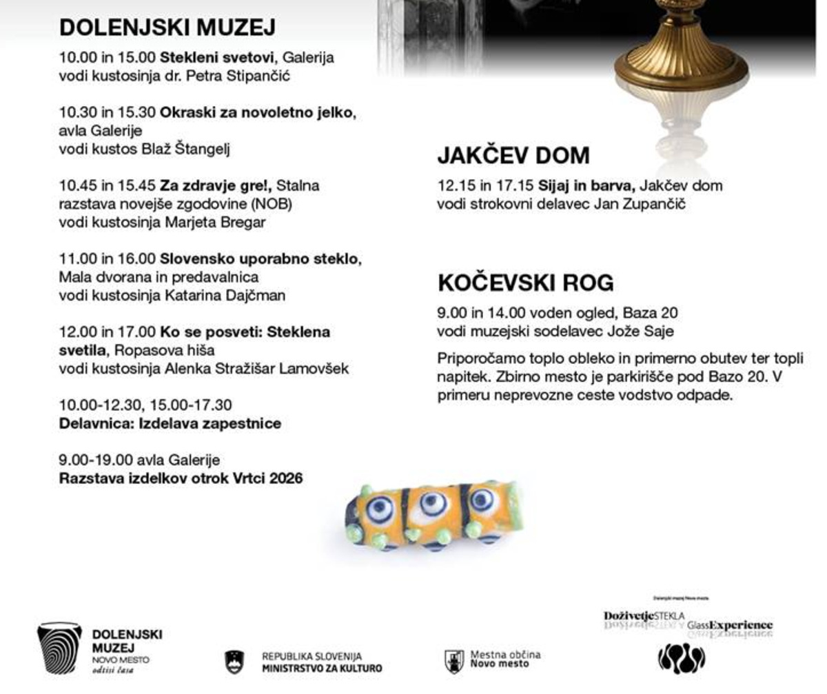 Ob slovenskem kulturnem prazniku, 8. februarja 2026, in izteku projekta Doživetje stekla vabljeni v Dolenjski muzej, Jakčev dom in na Bazo 20.